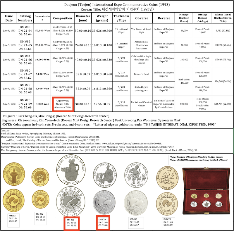 | 1993 | Taejon International Exposition | 5,000-Won | 80 | Farmers' Band | 0.4999 | ----- |