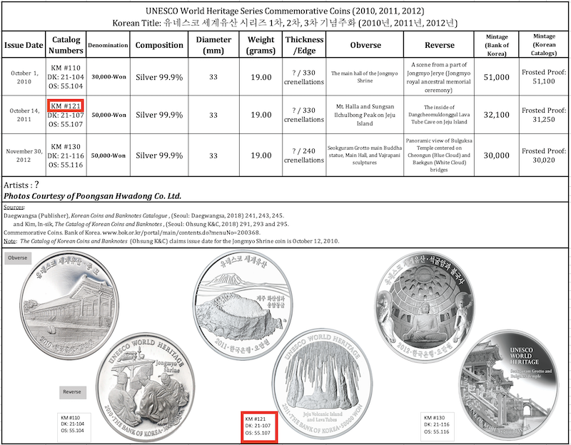 | 2011 | UNESCO World Heritage | 50,000-Won | 121 | Mt. Halla | 0.6103 | ----- |