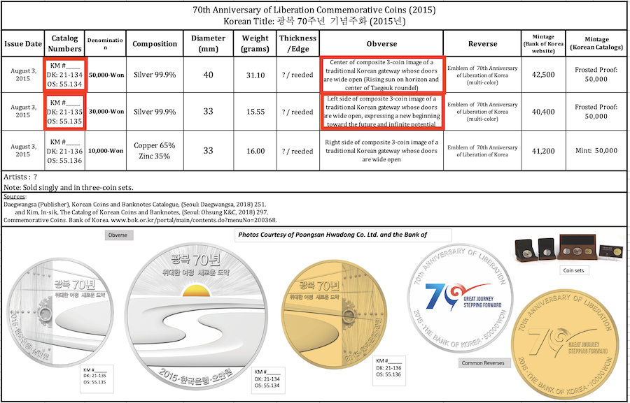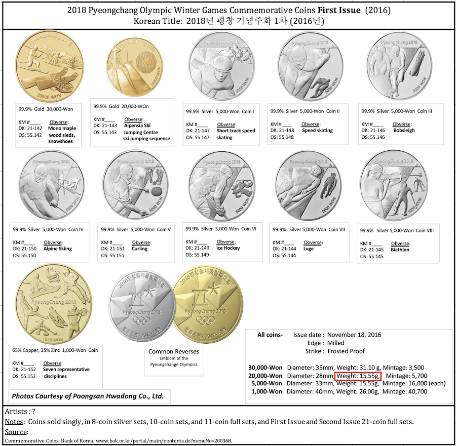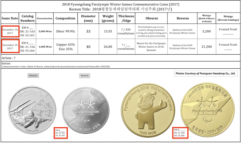 and at the Bank of Korea webpage, “Currency: Commemorative Coins, 24th Seoul Olympic Games Commemorative Coins [화폐: 기념주화, 제24회 서울올림픽대회 기념주화],” Bank of Korea, Web, no date, www.bok.or.kr/portal/main/contents.do?menuNo=200368, 9 Dec 2018.