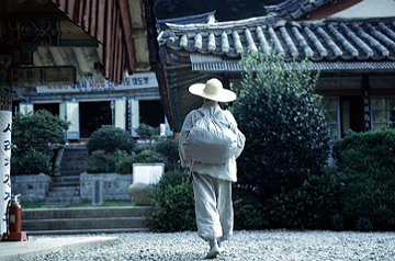 | A monk at Yonghwasa temple on Miruk Island in South Kyongnam Province. |