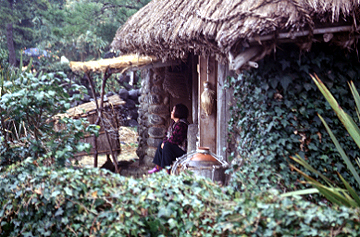 | ..a woman sitting on the stoop of a traditional Cheju Island house. |