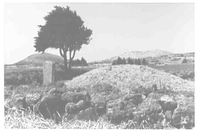 ..a grave mound on Cheju. The mound on island graves are similar to mainland graves, however, the islanders ring them with the ever-present black volcanic rock that is found all over Cheju. |