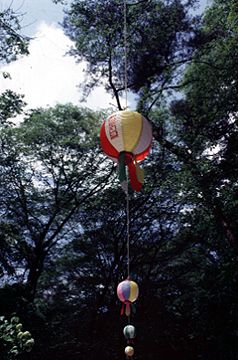 A string of lanterns on a path leading to a temple. Korean Buddhist temples are decorated with these lanterns during Buddha's birthday. |