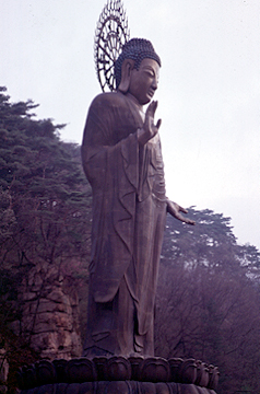 This is the Unjin Miruk Buddha (Buddha of the Future) of Kwanchoksa in South Chungchong Province. It's the largest free-standing Buddha figure in Korea. |