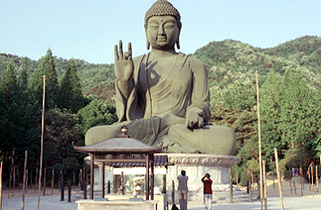 ..the 33-meter high Miruk Buddha of Popchusa (seen above). The bronze statue was cast in one mold and weighs 150 tons. It was dedicated to Korean unification and world peace. |