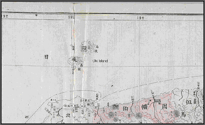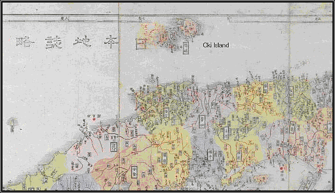 In 1876 cartgrapher Asano Meido also considered Oki Island as the western boundary of Japan (border of the map, at top)